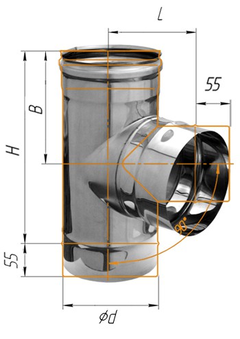 Предназначен для изменения направления дымового канала, используется в местах присоединения теплогенерирующего аппарата к основному каналу. Выполняет функцию очистного приспособления, облегчает обслуживание дымохода.