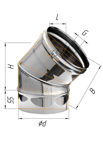 Колено 45°(430/0,5мм) d120 (2 секции) одностенные дымоходы